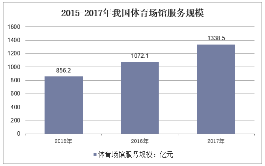 体育场馆数量、规模双增长。近年来我国重视体育设施建设,体育场地不管是数量上还是规模上都呈现快速增长趋势。根据国家体育总局数据分析,2017年我国体育场馆数量达到195.7万个,体育场馆服务规模达到1338.5亿元,反映出我国体育场地设施建设快速蓬勃的发展势头。